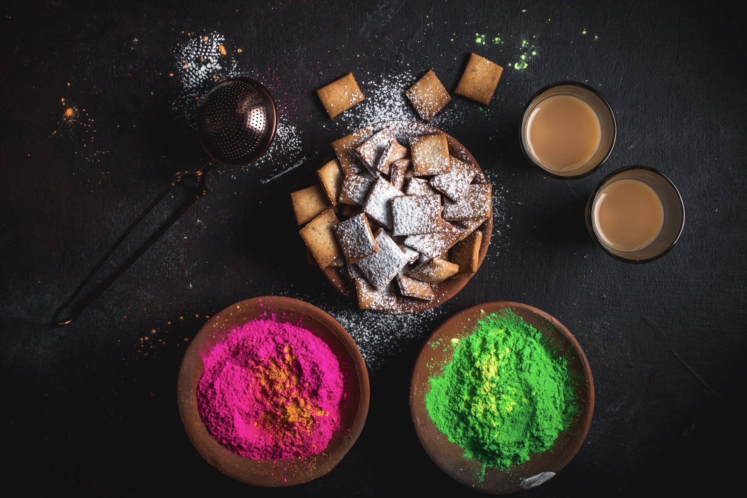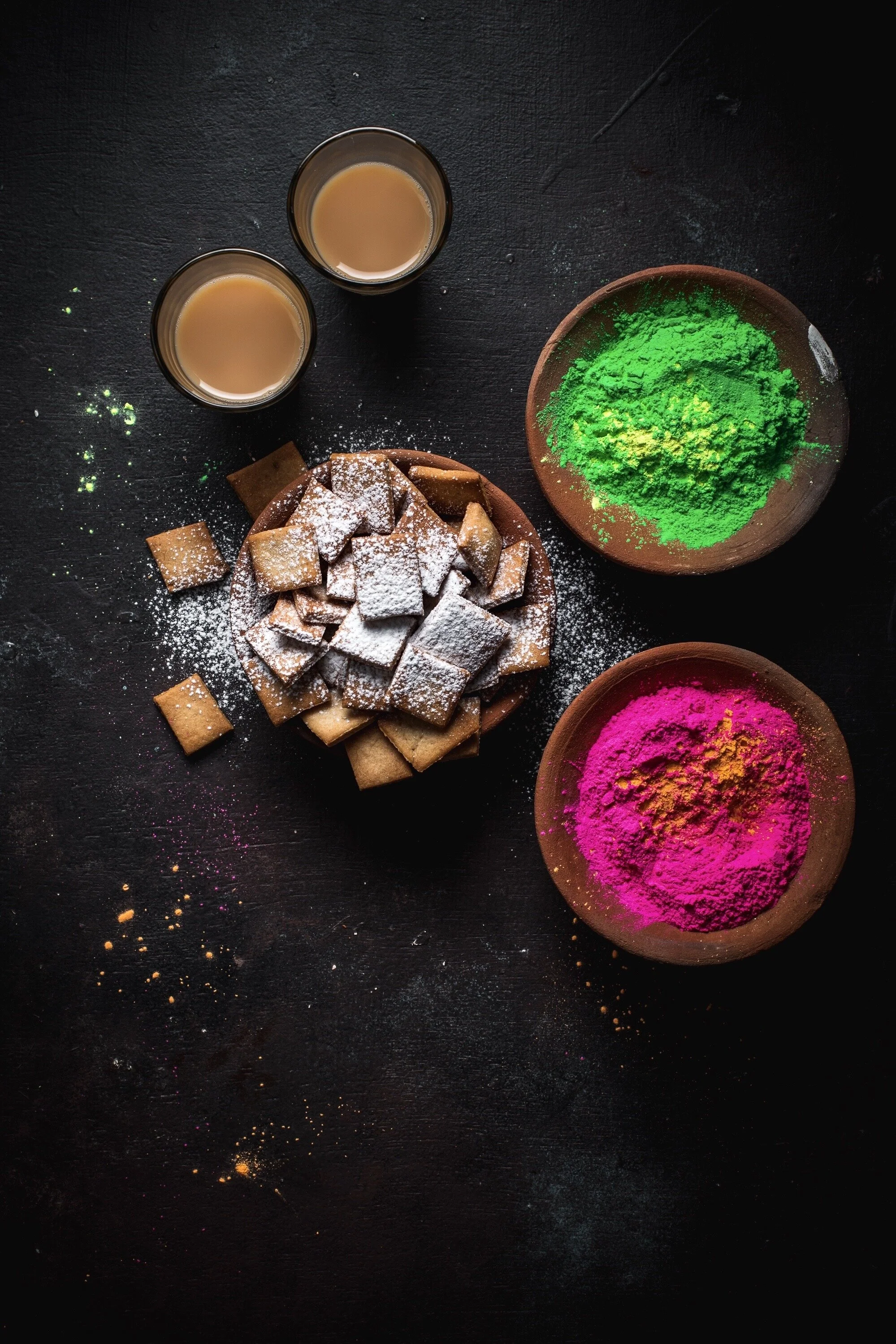 Looking for last-minute ideas for something to make this Holi? How about some baked shakkar pare? These sweet and crispy pastry bites are a popular snack during the Indian festive season. Traditionally, shakkar pare are deep fried then dunked into sugar syrup. For my version, I baked them in an oven and dusted them with some powdered sugar upon cooling. They are easy to make and slightly healthier than the regular kind (of course, you can always deep fry them if you want). They are also excellent served alongside masala chai. You may want to double the batch because they won’t last long.