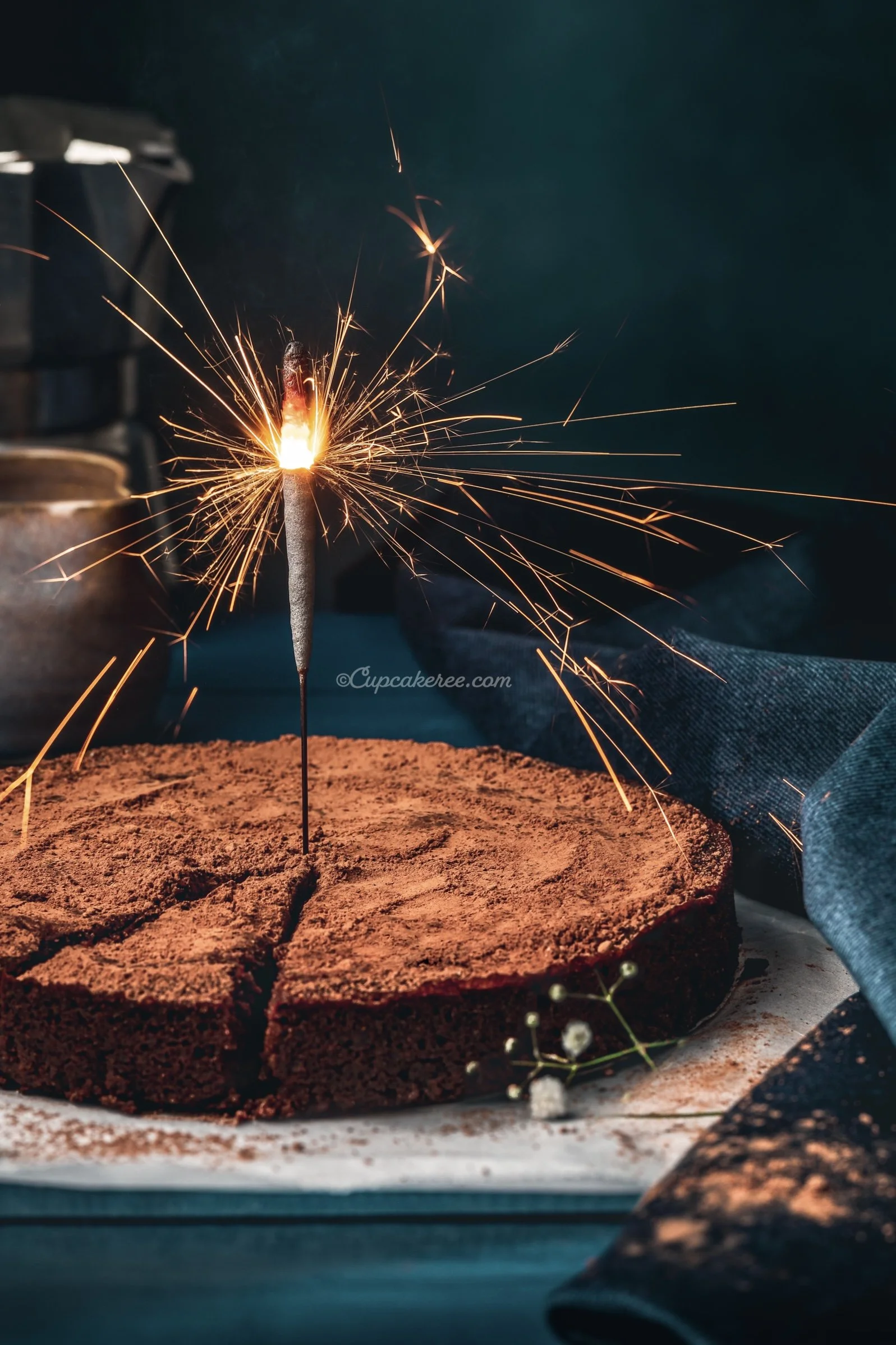 Prefer chocolate to pumpkin? I have you covered with this dark, decadent and boozy chocolate almond brownie torte. This moist brownie cake is flourless, grain-free and gluten-free. It is sweetened with coconut sugar which adds a subtle caramel undertone. The addition of nuts is optional, as is the soaking liqueur; omit one or both, the torte will still be delicious. This fudgy dessert is good on its own, but it’s even better with a scoop of vanilla ice cream or a dollop of boozy whipped cream. Serve it as the perfect ending to any intimate celebration. Or double the recipe and make it a festive addition to your holiday table.
