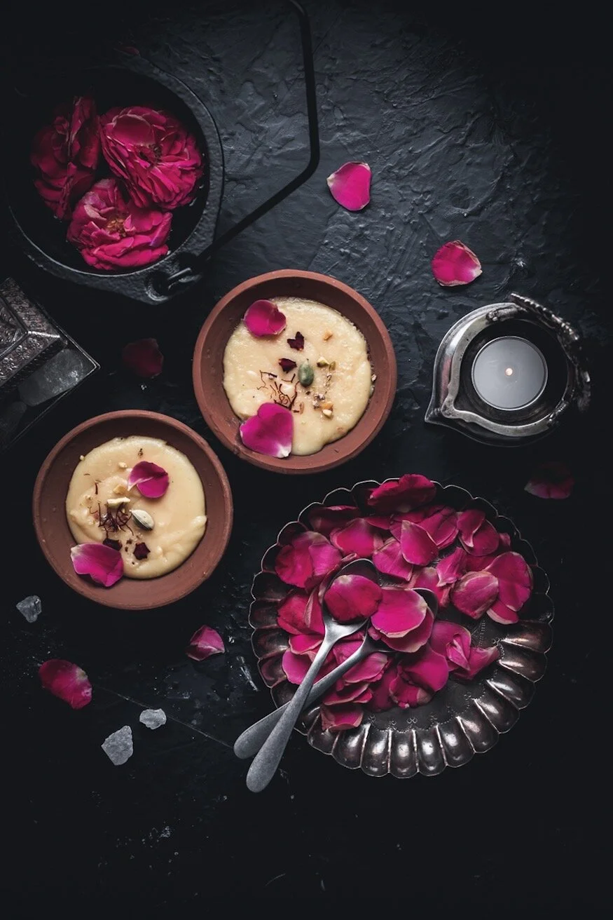 Garnish with the remaining nuts and dried rose petals. Cover the dish with a mesh lid and leave aside for a few hours to set.