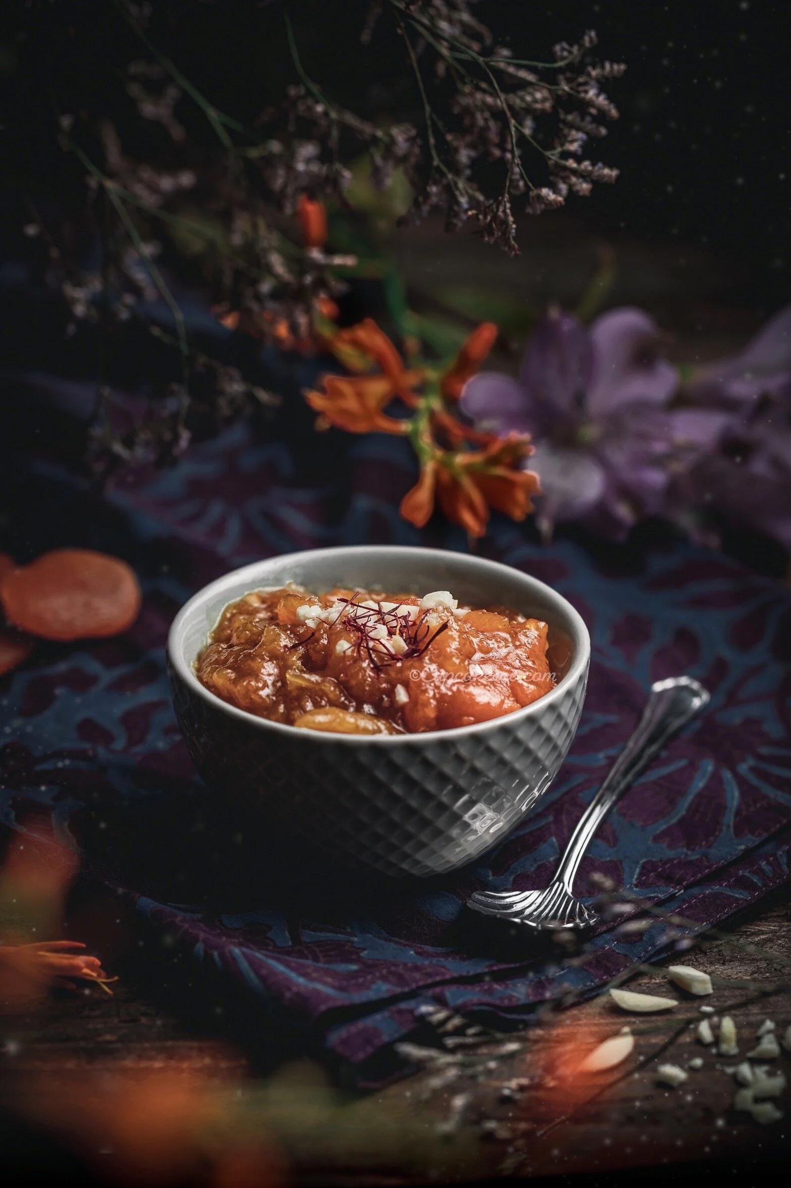 This is my take on a popular Hyderabadi dessert. It is traditionally prepared with dried apricots (Khurmani/Jardalu). I use semi-dried Turkish apricots and coconut sugar for my version (you can substitute them with dried apricots and refined sugar if you prefer). Whilst it may not be authentic, this delightful pudding is slightly tart and pairs well with lightly sweetened custard or cream. I have even served it with cardamom-infused Greek yogurt and Almond Panna Cotta.