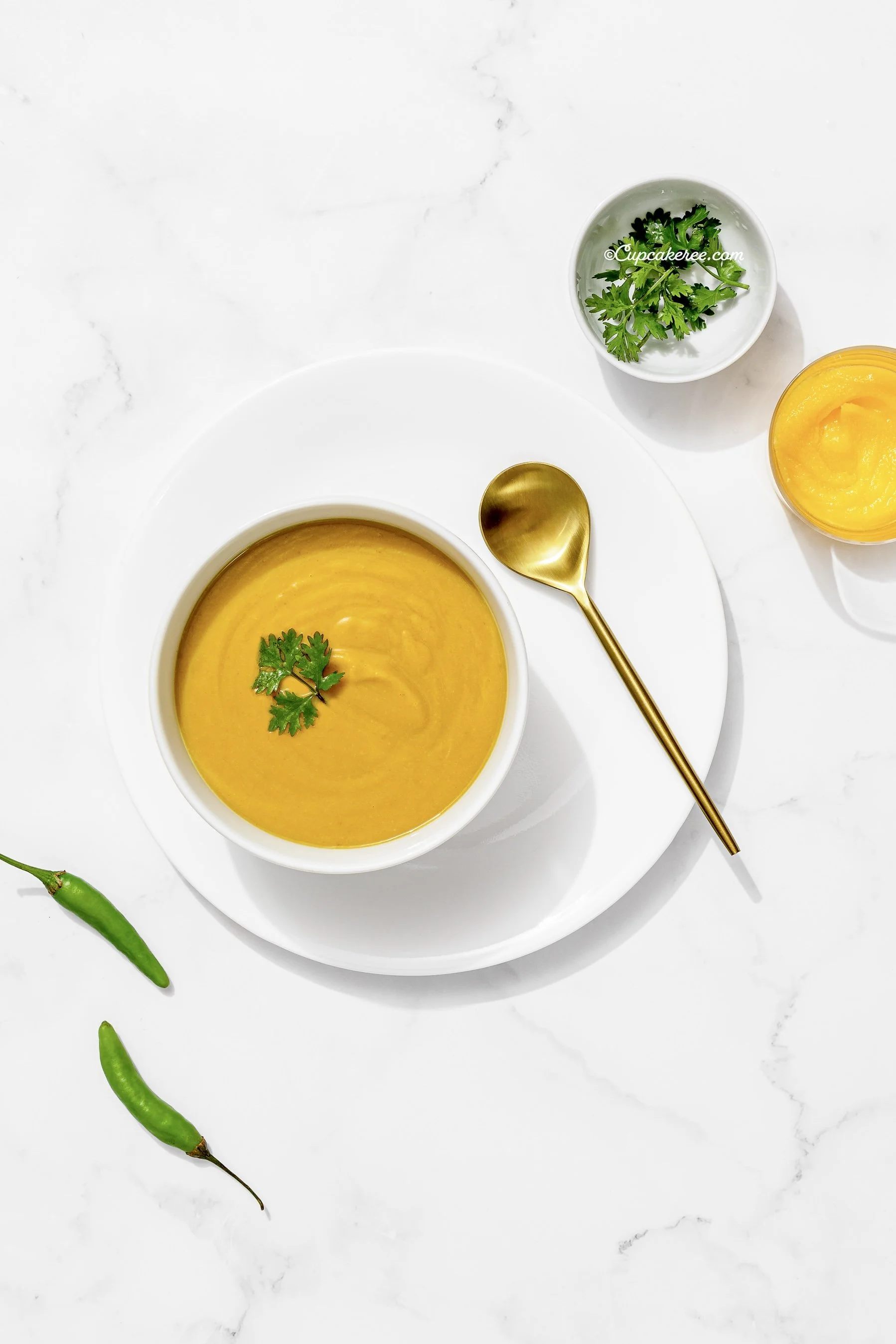The soup is best served with a side of steamed rice or some crusty sourdough bread. It freezes well. You can double the batch and freeze half for later (just use an immersion blender to puree it once more when you defrost the soup).