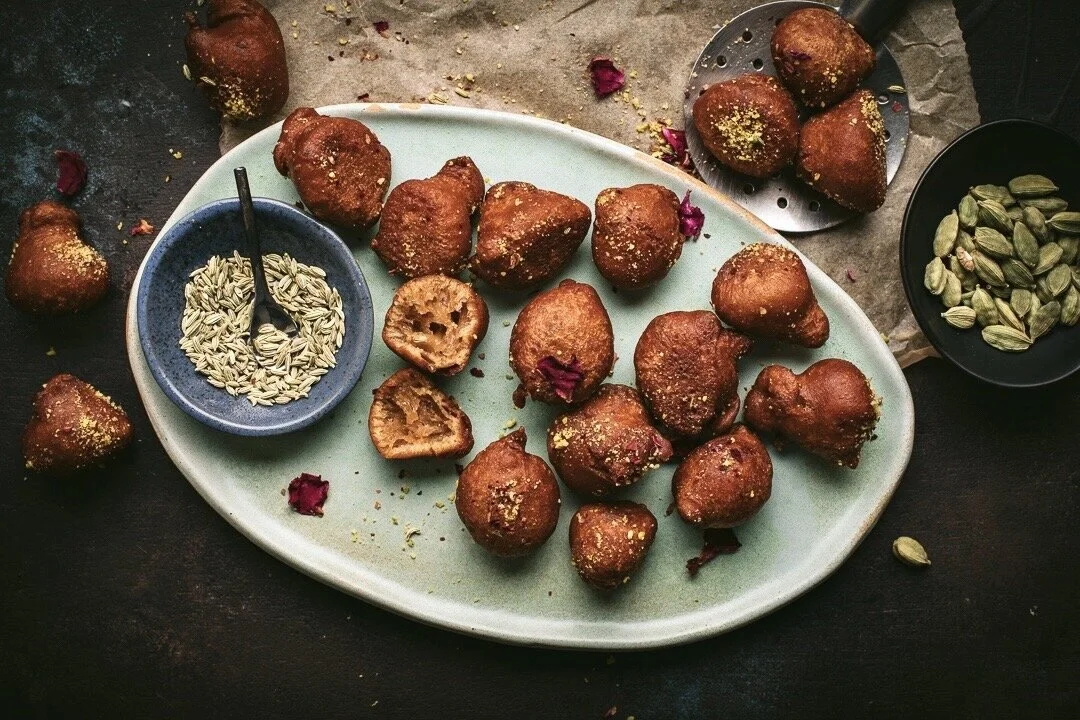 How can you go wrong with little bites of sweet, deep fried dough? There is no doubt about it… these hush-puppy like fritters with a chewy, crispy exterior and a soft, spongy center are delicious. The only thing to remember whilst making these fritters is to keep the batter the right consistency and to slow fry them on low heat so that they are cooked all the way through.